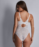 With refined lace in a rose pattern that nestles against the skin, the Rosessence bodysuit is mostly see-through for a decidedly modern and sexy silhouette. Full coverage at the bust for comfort, it boasts a plunging neckline. A very sensual cut-out elegantly unveils bare skin at the back.