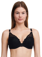 Chantelle low-cut T-shirt bra with a floral embroidery overlay.