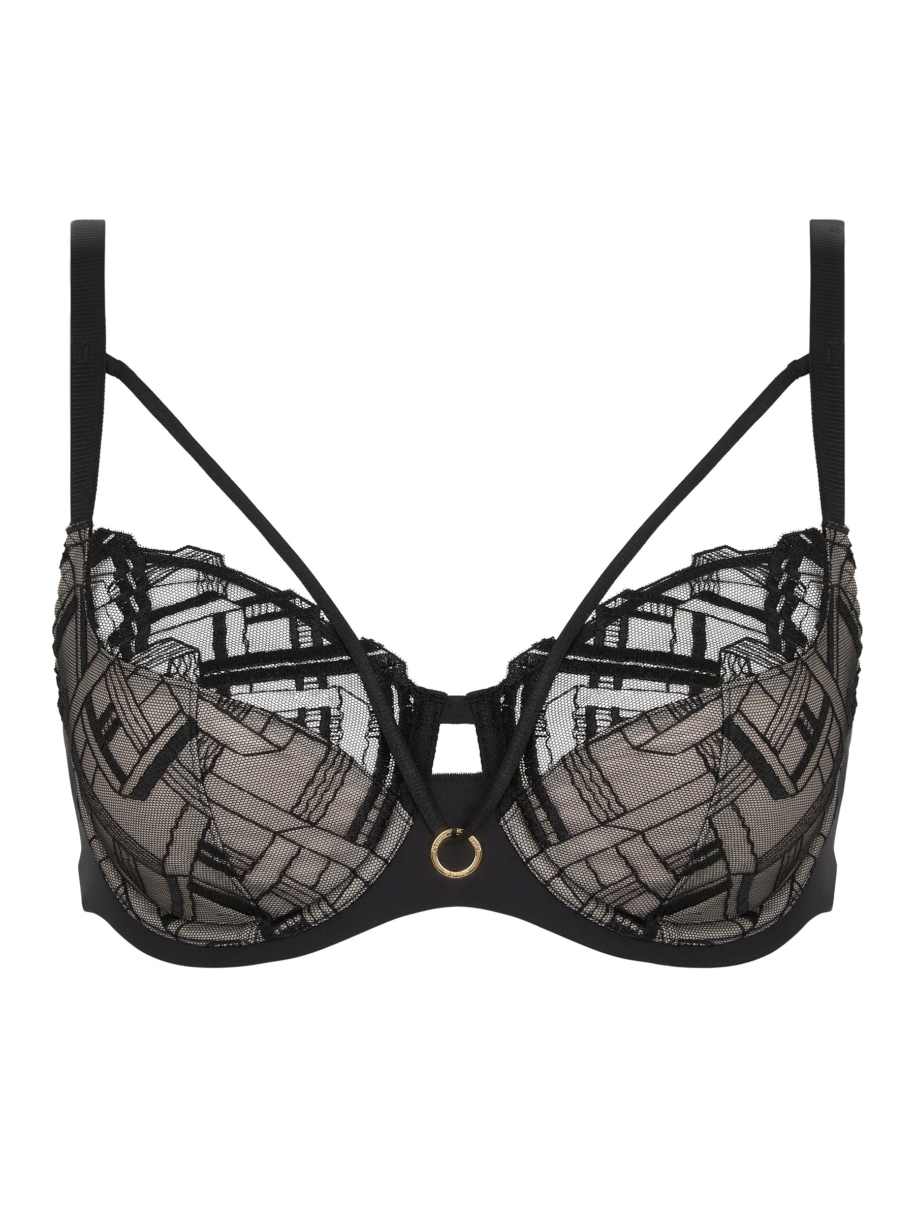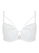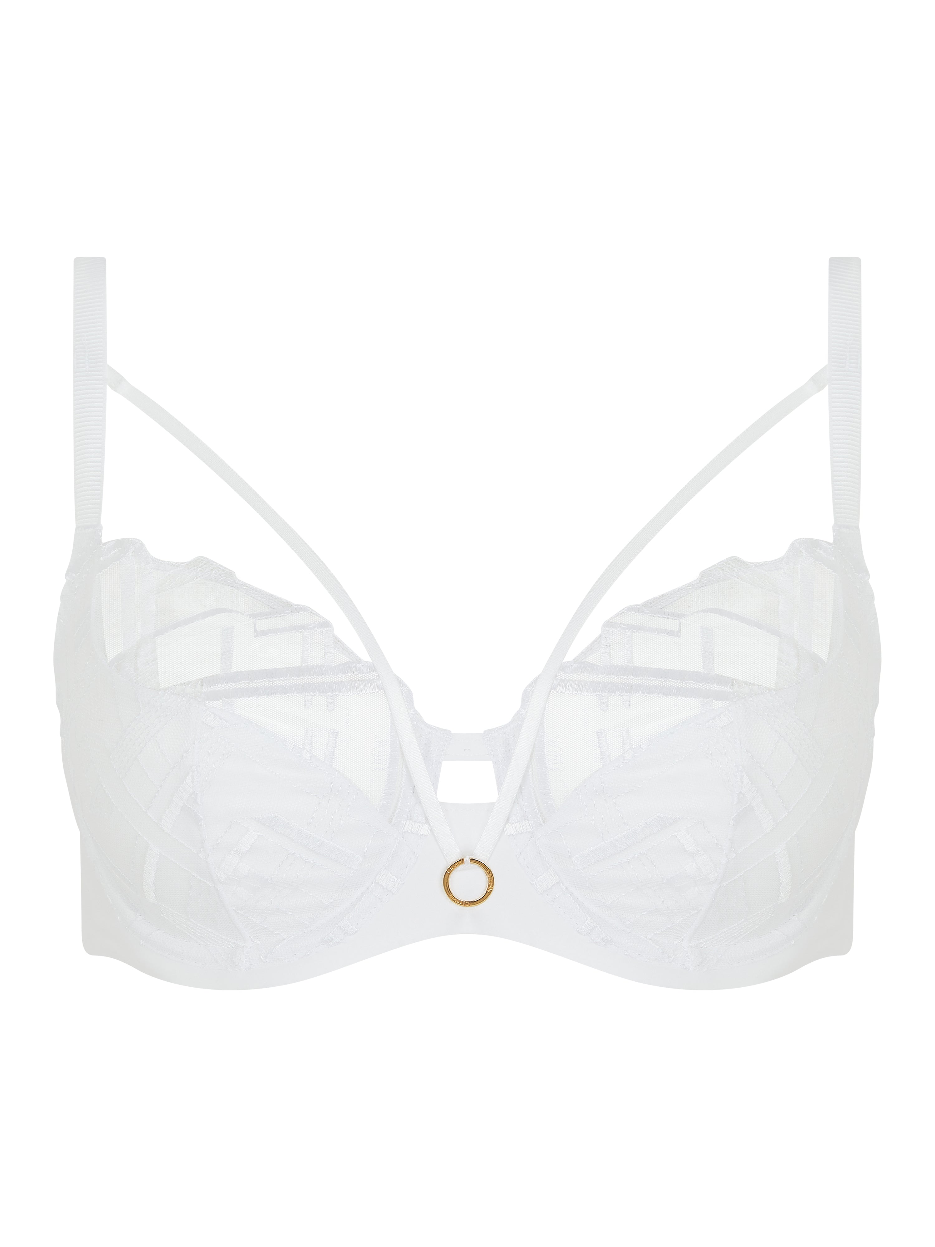 Very full coverage underwire bra for a naturally rounded bust and optimal support. Embroidered cups, lined for better support. Removable straps at the neckline. Innovative back construction with a double layer: - Upper layer made of seamless (neatly cut) thin spacer, a soft, opaque, light and breathable fabric - Lower layer: Elastic, strong mesh lining for optimal support, very soft on the skin. High back that lies on the skin without cutting in. Fully adjustable, refined straps. Chantelle brand jewel in the front center.