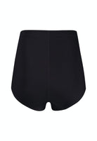 - High-waisted panty creates a slimming look