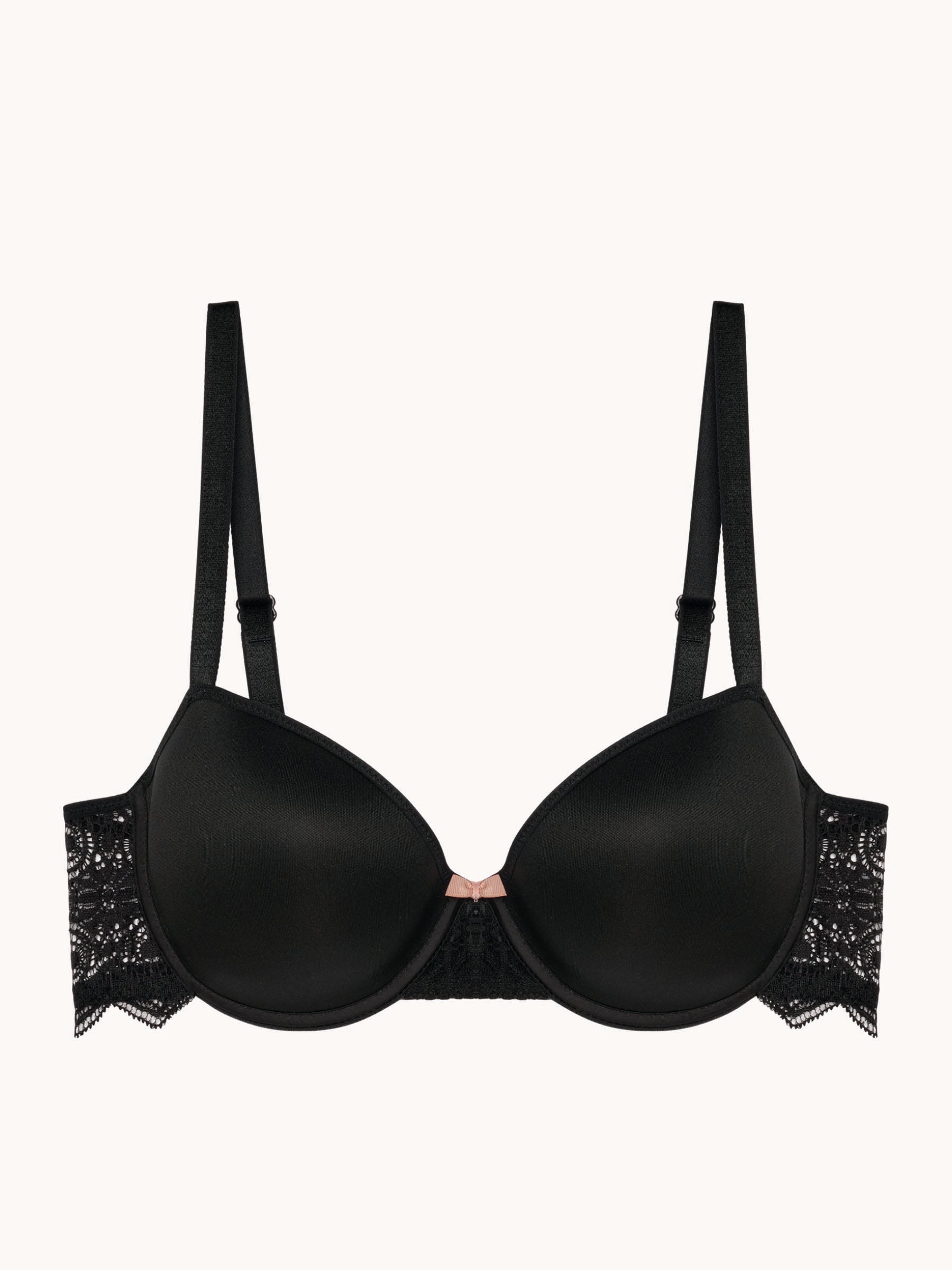 A second-skin bra, shaping a lovely round bust. Wired bra with memory foam cups, a plush complex that perfectly adapts to your curvessoft and opaque cups, perfectly invisible under clothinglace detailing on the center front and backcomfortable fully adjustable straps.