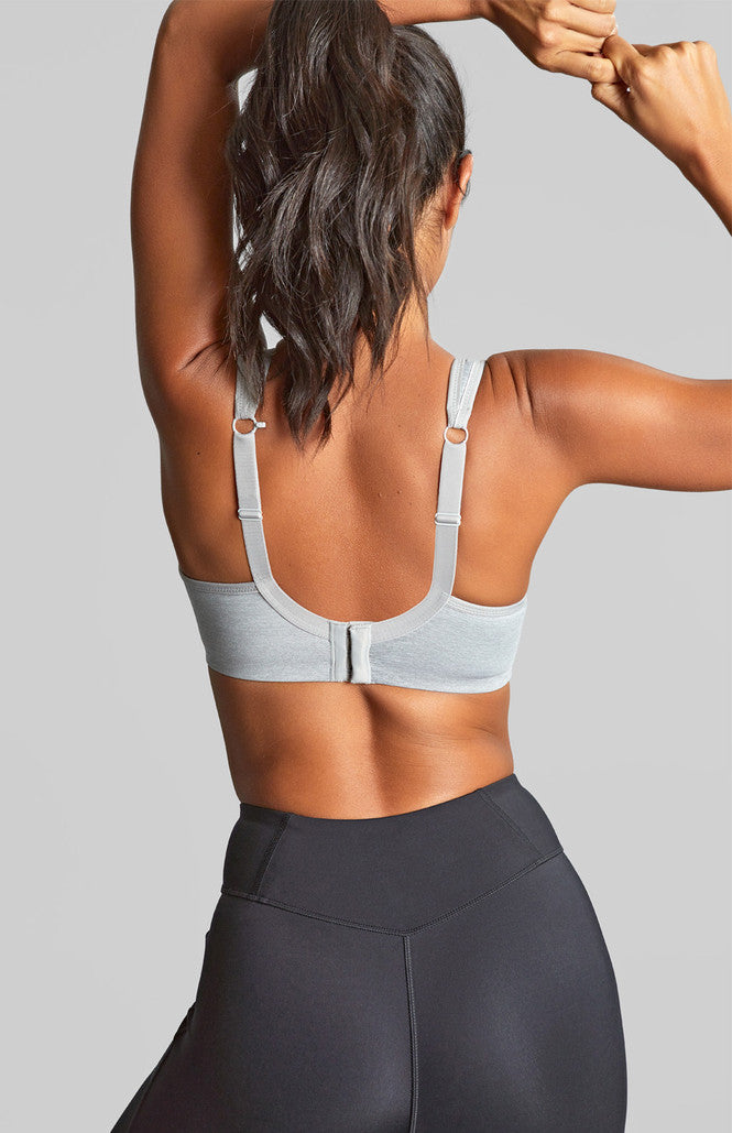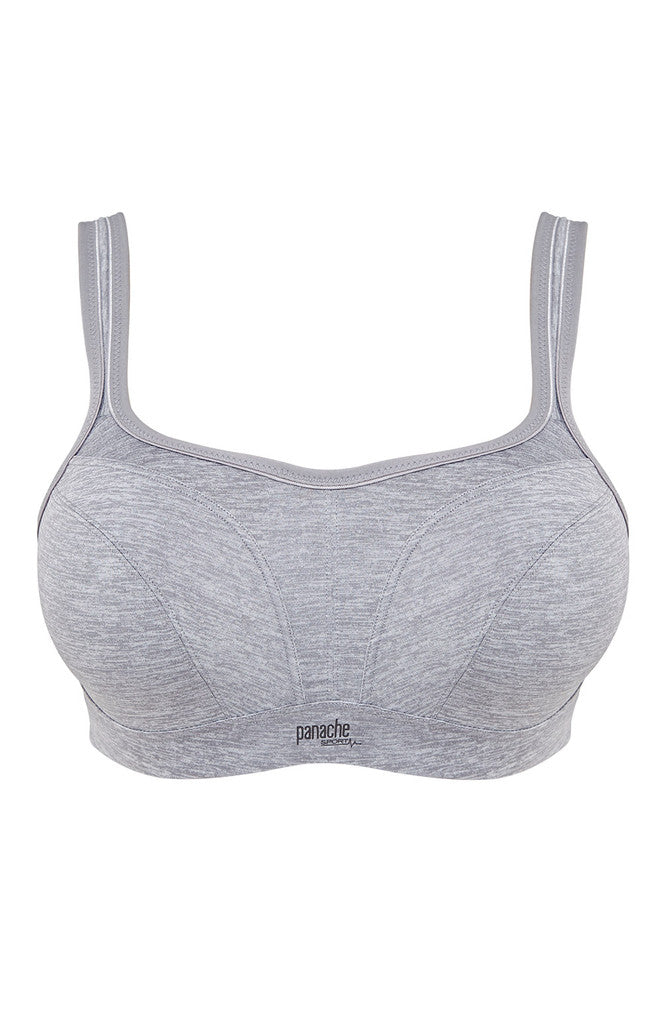 Fashion forward, comfortable and supportive, the Panache Sport Bra in grey marl, providing you with maximum support and a stylish design. The moulded seam free inner cups encapsulate each breast, offering control and give a defined shape whilst the wide cushioned shoulder straps, with racer back ring detail offers additional stability and support, dispersing pressure whilst exercising. The breathable outer performance fabric also offers ventilation, allowing you to keep dry and comfortable whilst working out. Perfect for both high and low impact exercise, it's a definite must have for all you stylish fitness fanatics out there; available in a B to J cup.