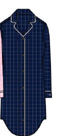 Sleepshirt with long sleeves, woven, buttoned throughout, white piping.
