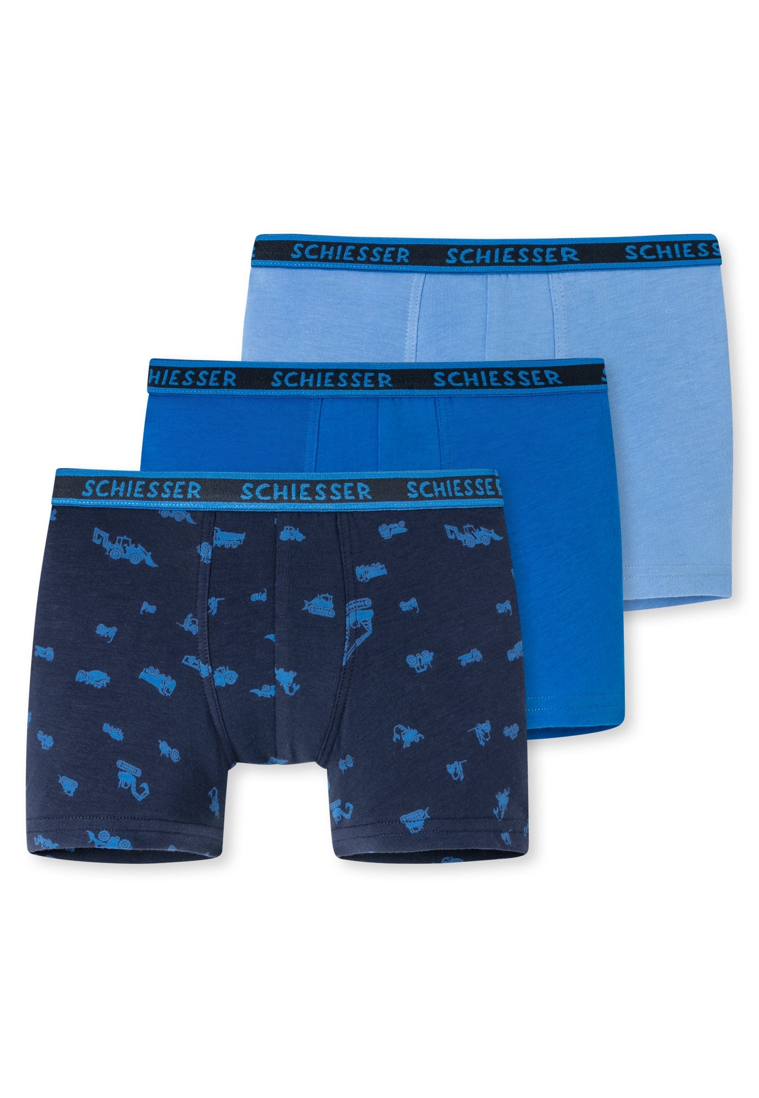 These casual boys' shorts in a practical pack of three will put you in a really good mood! Whether plain in strong dark blue or with different motifs - this multipack is just the thing for our little explorers. The single jersey material made from sustainable organic cotton and the comfortable woven elastic waistband ensure a perfect fit and plenty of comfort when playing and romping - all in the best SCHIESSER quality!