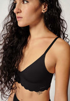 Soft as a cloud, this soft bra with removable pads is so pleasantly light that it envelops naturally feminine curves. The V-neck gives the underwear a modern look. The straps and closure are easily adjustable. The scalloped edge perfectly rounds off the underwear design.