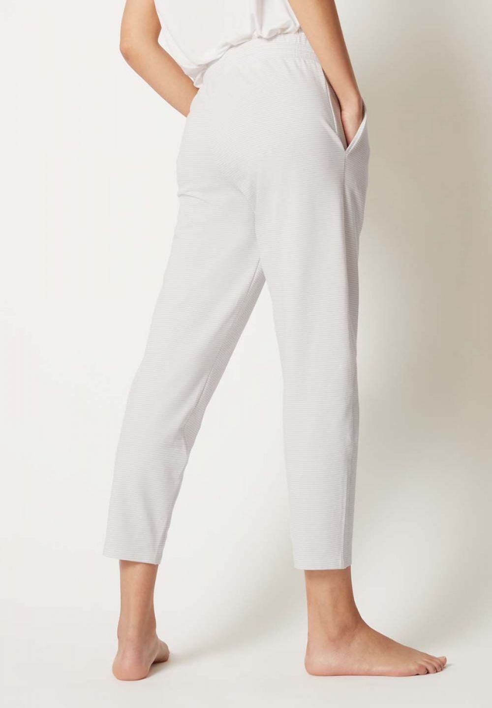These pajama pants with drawstring and pleats prove that beautiful nightwear doesn't just belong in the bedroom. The super soft cotton loopback fabric of the pajama pants also provides maximum comfort during movie night, for example. Combined with a loose shirt, the long pants become a trendy outfit.