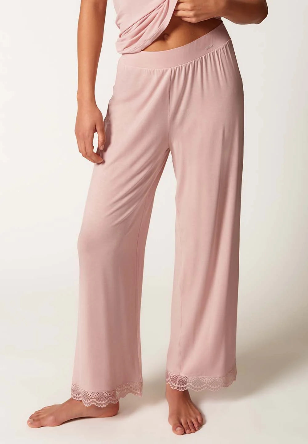 These pajama pants are the perfect underwear companion for relaxing moments in bed, on the sofa, etc. They are flowing and loose, but still hold securely thanks to the comfortable waistband. The visual highlight is the lace on the hem of the pajama pants - the perfect mix with the special TENCEL™ Modal quality.