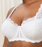 - Softly padded cups made from elastic lace.