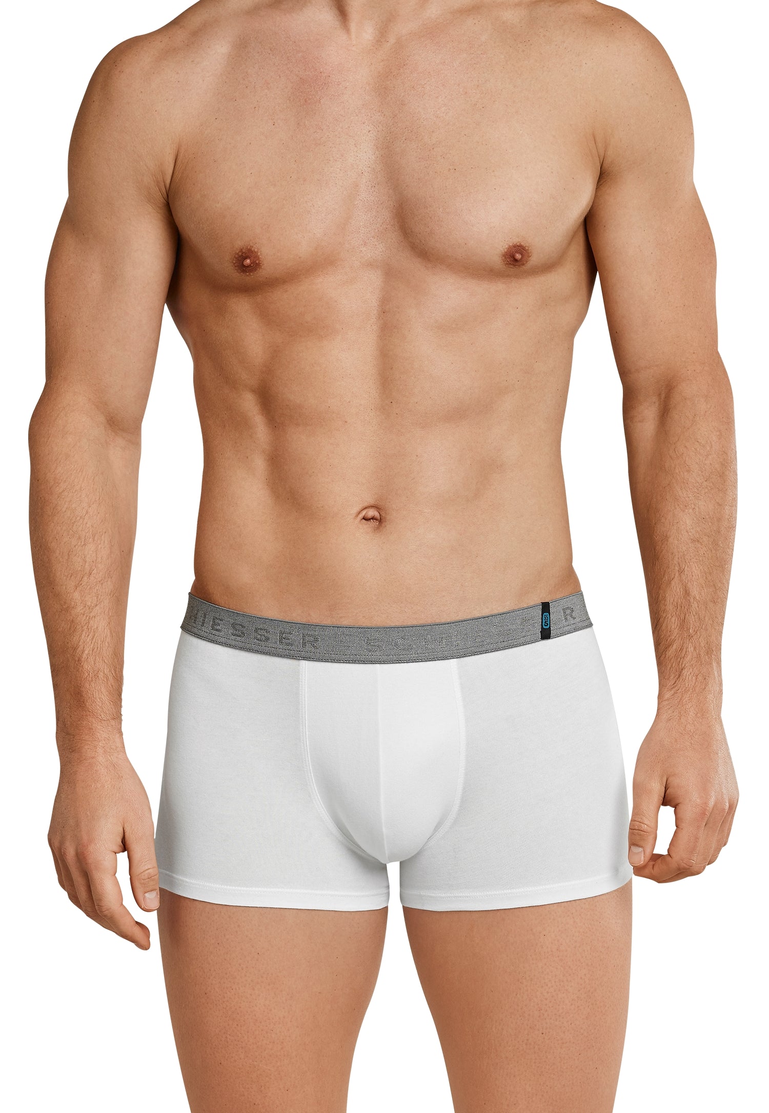 black, body-hugging men's shorts in a practical 2-pack, from the popular SCHIESSER series 95/5, contrasting woven elastic waistband with SCHIESSER lettering, pleasantly soft and dimensionally stable thanks to 95% matt, glossy Pima cotton and 5% elastane, in a perfectly fitting, elastic single -Jersey quality