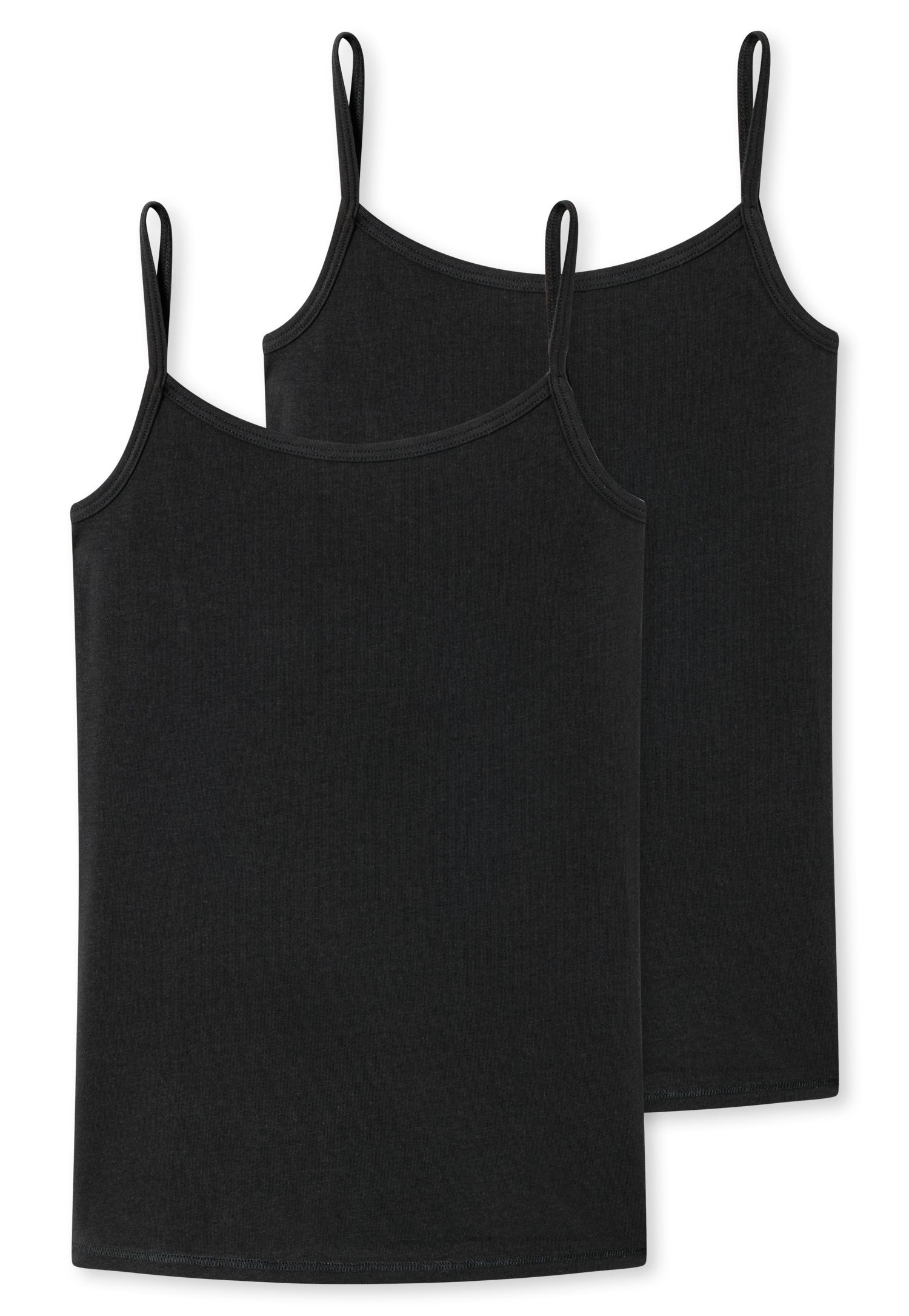Super comfortable material and a simple look make these two spaghetti tops for girls a top-class underwear double pack! The plain design not only looks great, but also feels wonderfully soft in the elastic single jersey made of organic cotton. The fine elastane content makes them dimensionally stable and stays in top shape even after washing. A cheerful basic duo in the best SCHIESSER quality!