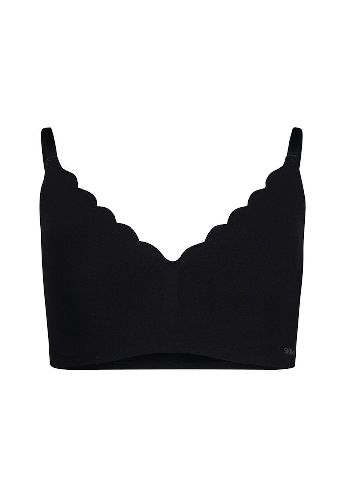 - V-neckline with scallop edge