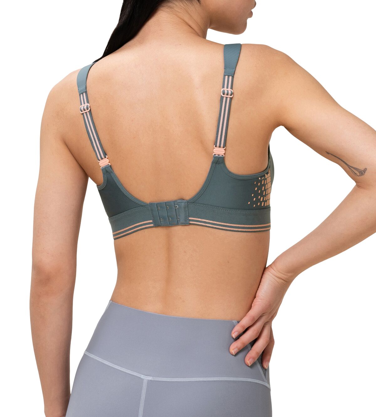 - Wide hook-and-eye closure, gently padded
